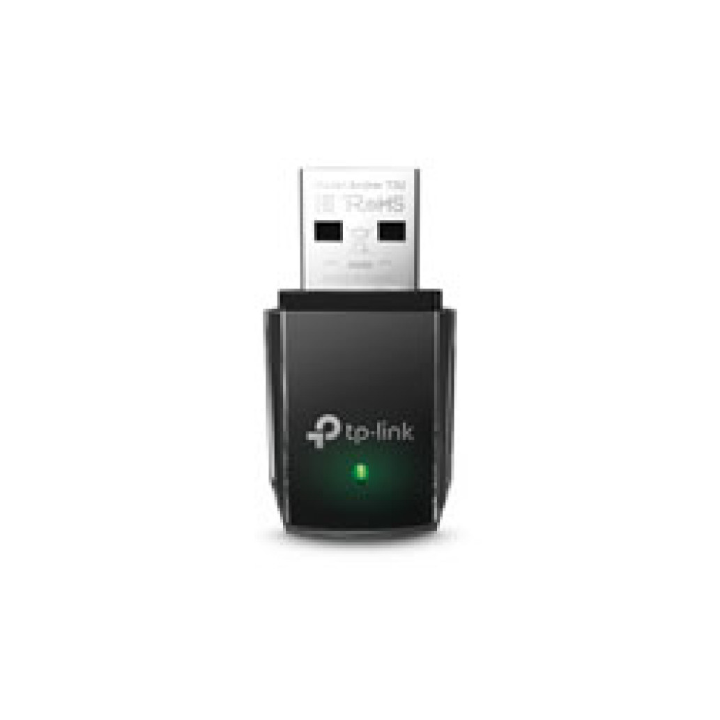 TP-LINK AC1300 Mini brezžični MU-MIMO USB adapter. Tehnologija povezovanja: Žična, Vmesnik gostitelja: USB, Vmesnik: WLAN. Največja hitrost prenosa podatkov: 1267 Mbit/s, Najvišji standard WLAN: Wi-Fi 5 (802.11ac), pas WLAN: Dvopasovni (2,4 GHz/5 GHz). USB. Barva izdelka: Črna