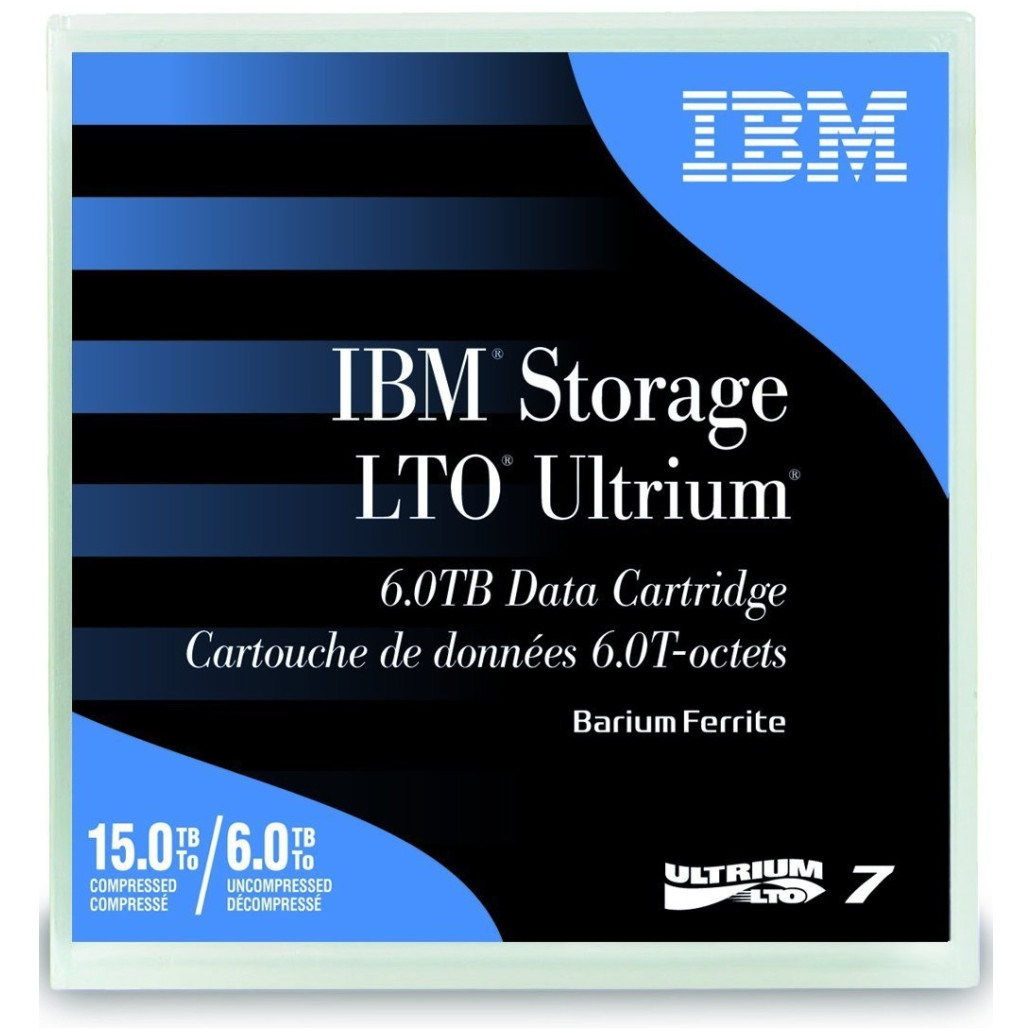 Podatkovna kartuša IBM LTO Ultrium 7. Vrsta izdelka: Prazen podatkovni trak, Vrsta traku: LTO, Nestisnjena zmogljivost: 6000 GB. Dolžina traku: 960 m, debelina traku: 5,6 µm, širina: 105 mm