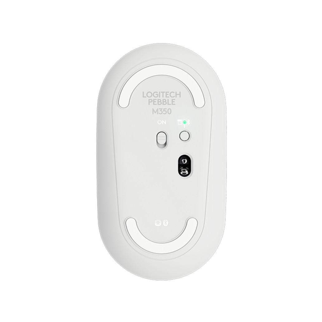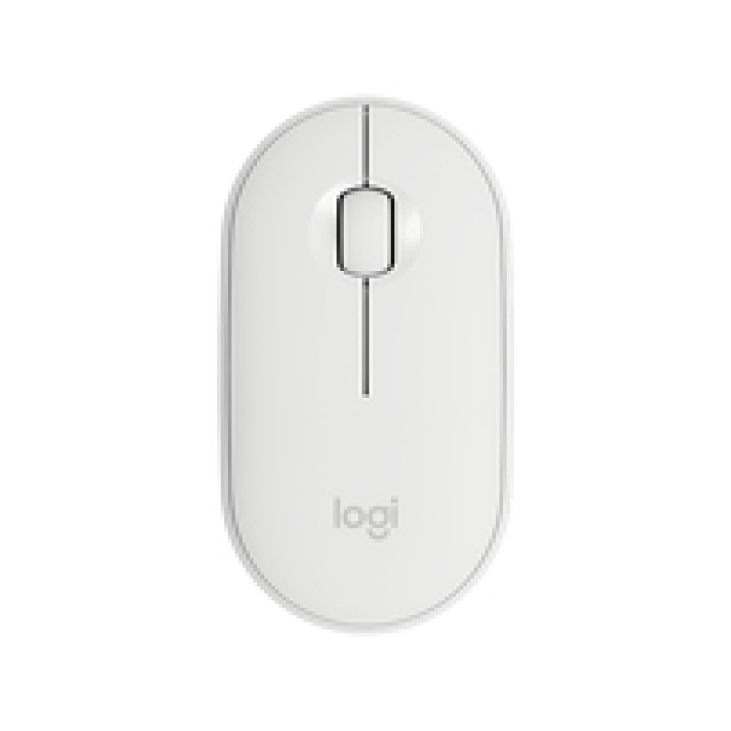 Logitech Pebble M350. Faktor oblike: Ambidextrous. Tehnologija zaznavanja gibanja: Optična, Vmesnik naprave: RF brezžična + Bluetooth, Ločljivost gibanja: 1000 DPI, Vrsta gumbov: Pritisnjeni gumbi, Količina gumbov: 3, Vrsta pomika: Kolo Vir napajanja: Baterije. Barva izdelka: Bela