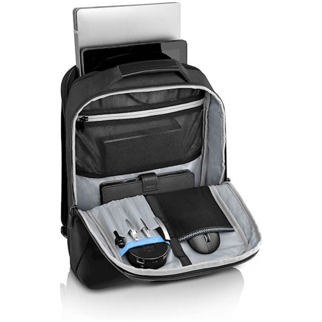 Prostorni nahrbtnik za prenosni računalnik bo zaščitil vaš računalnik pred vsakodnevnimi umazanijami. DELL nahrbtnik Premier Slim Backpack 15 460-BCQM je namenjen prenosnim računalnikom z največja diagonala 15,6”/39,62 cm, se lahko pohvali udobno dodelano obdelavo in prostorno notranjostjo. Nahrbtnik lahko preprosto pritrdite na ročaj kovčka.