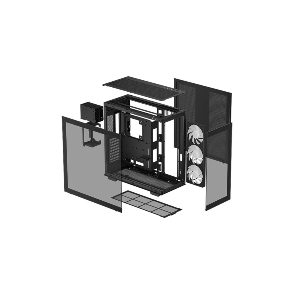 Kaljeno steklo na stranski plošči olajša nadgradnjo komponent, medtem ko dodatna možnost zaklepanja plošče s vijaki zagotavlja dodaten nivo varnosti. V ohišju je vgrajena zložljiva oporna roka za grafično, velikodušnih 26 mm prostora za urejanje kablov pa olajša vse postopke. Magnetni zgornji mrežni filter pomaga ohranjati ohišje brez prahu in ga je enostavno očistiti.