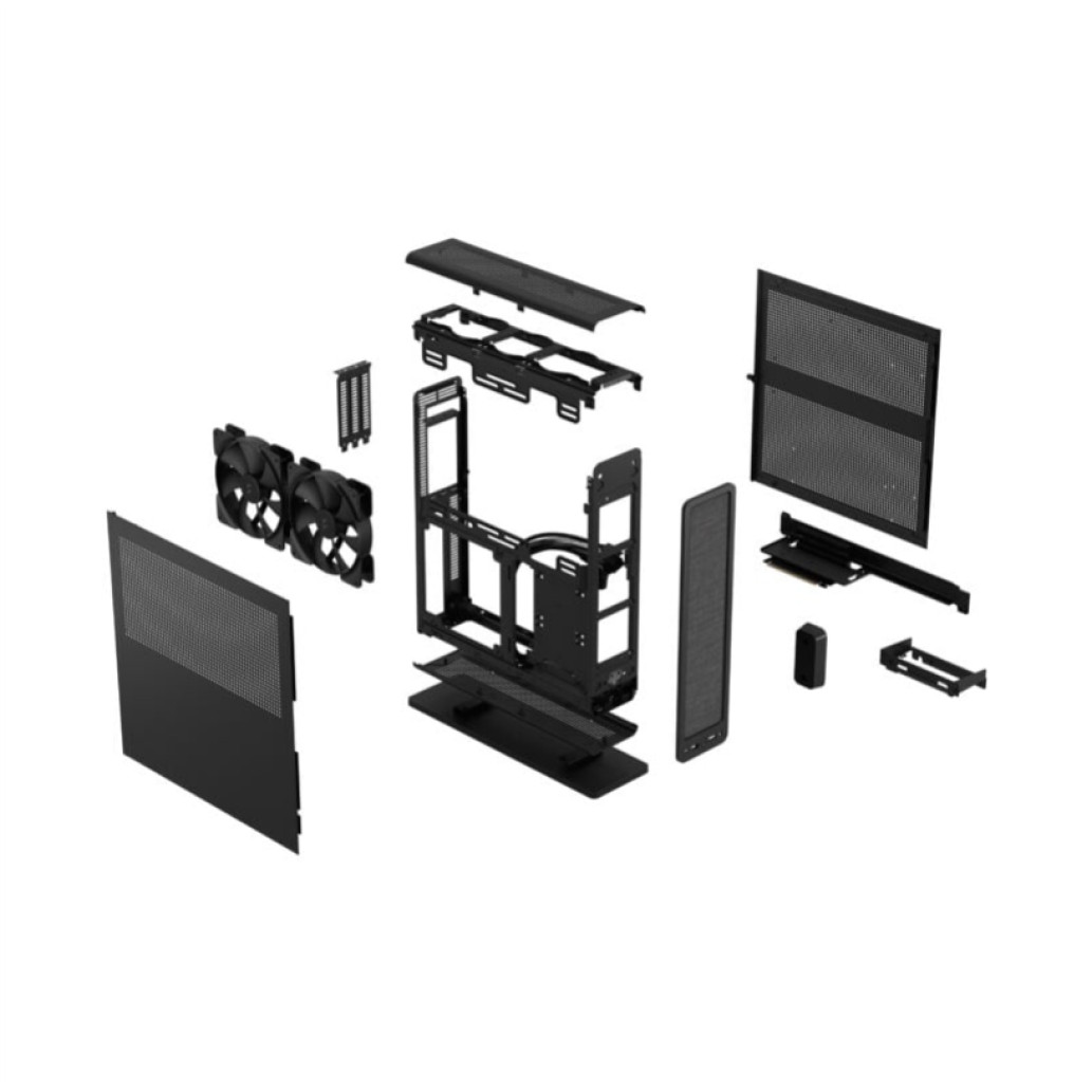 Fractal Design Ridge. Faktor oblike: Faktor majhne oblike (SFF), Tip: PC, Barva izdelka: Črna. Podprti faktorji oblike napajanja: SFX, SFX-L. Nameščeni stranski ventilatorji: 2x 140 mm, podprt premer stranskega ventilatorja: 120.140 mm, podprt premer ventilatorja (zgoraj): 80 mm. Podprte velikosti trdih diskov: 2.5″, faktor oblike SSD: 2.5″. Širina: 110 mm, Globina: 374 mm, Višina: 395 mm.