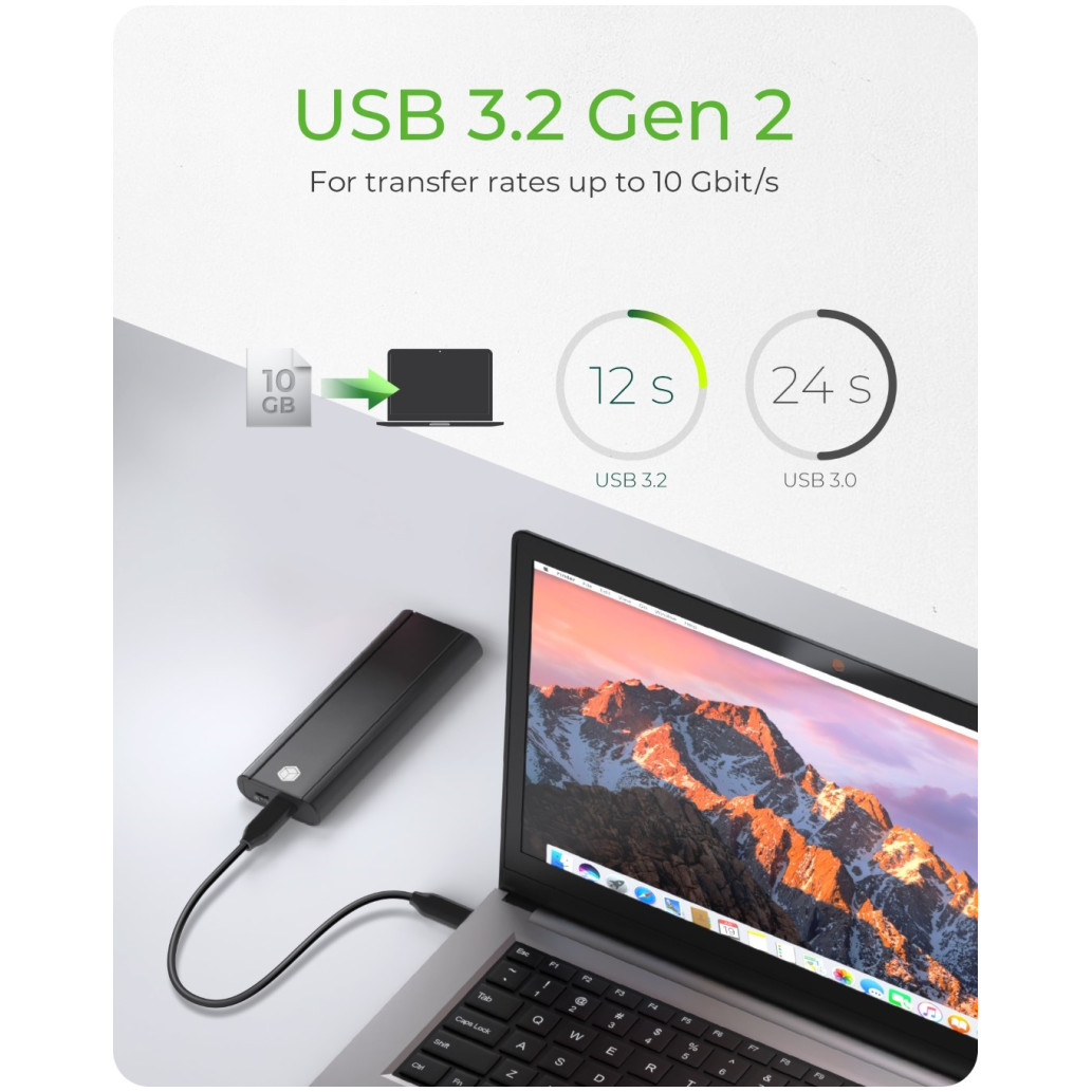 Aluminij zagotavlja tudi optimalno hlajenje SSD diska. USB 3.2 (Gen 2) zagotavlja hiter prenos podatkov do 10 Gbit/s.