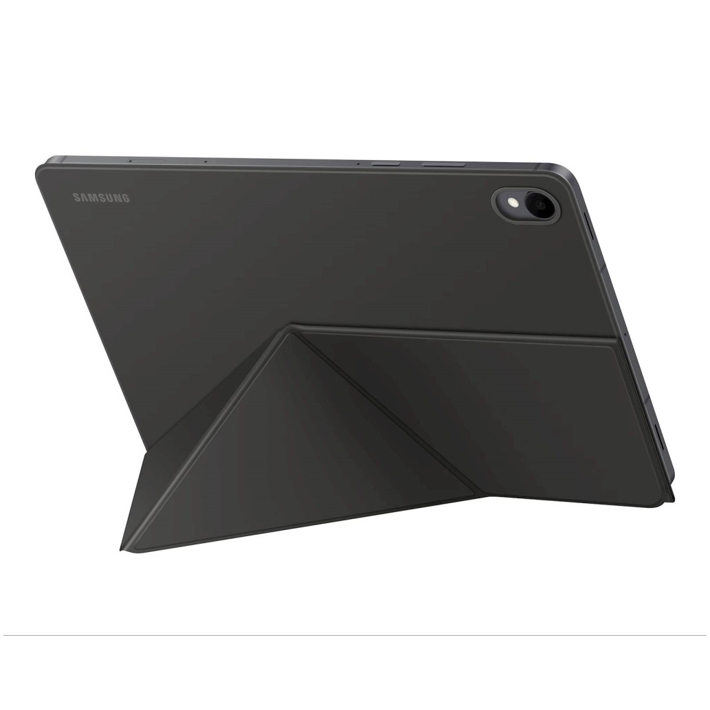 Tanek ovitek ohranja tablico lahko v roki in omogoča udobno delo, branje ali brskanje na poti, s preprostim magnetnim zapiranjem pa jo hitro pritrdite in nadaljujete. Knjižni ovitek omogoča postavitev Galaxy Tab v pokončen ali ležeč način, sprednji zavihek pa poskrbi za stabilno podlago in udoben kot gledanja. Kovinski detajl okoli kamere doda eleganco, mehka mikrovlakna v notranjosti pa ščitijo tablico pred praskami in madeži.