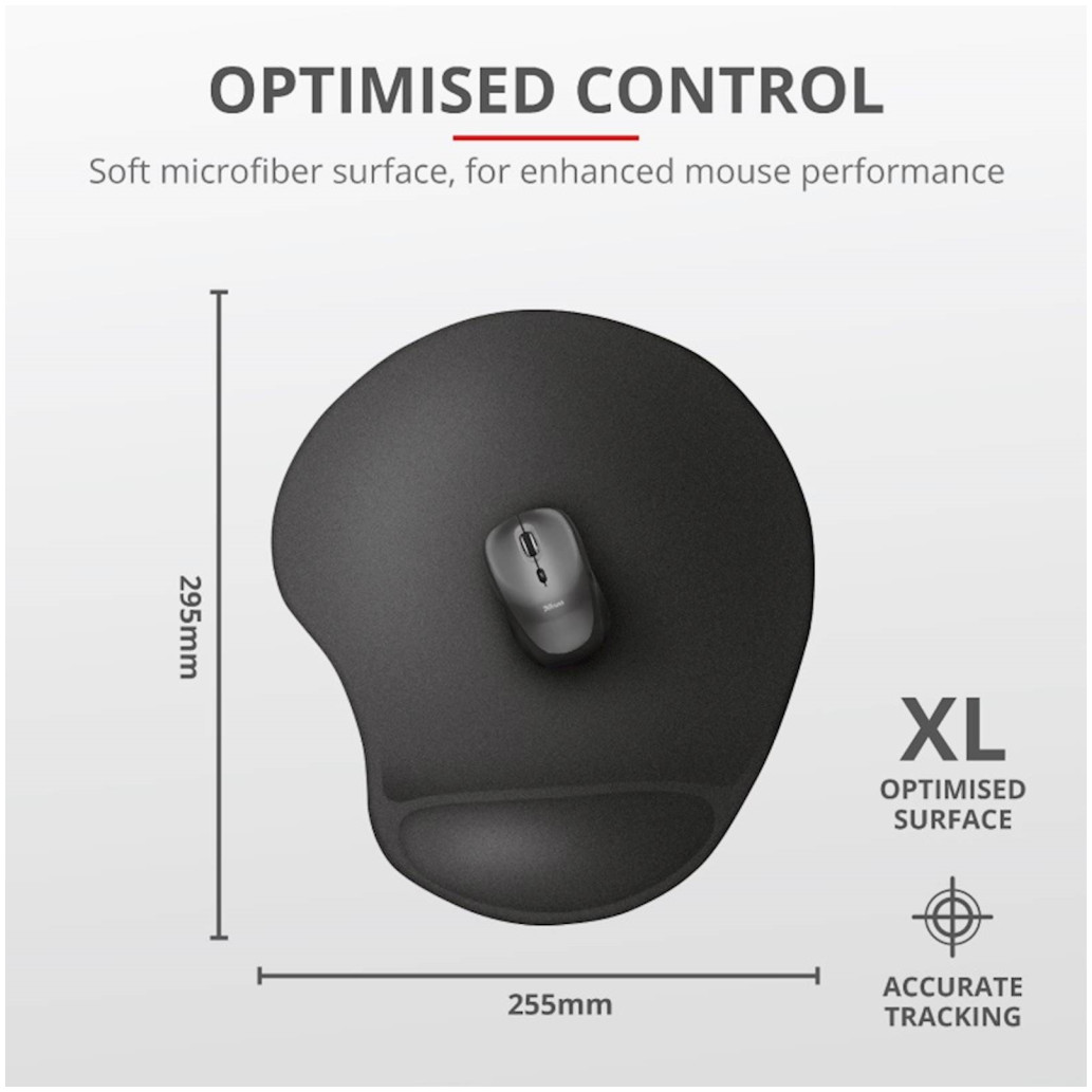 Z izjemno veliko površino je čudež, da je BigFoot do zdaj ostal skrit. Trust BigFoot XL Gel Mouse Pad vam omogoča udobno delo, ne da bi vam bilo kdaj treba skrbeti, da vam ne bo zmanjkalo prostora za miško. Se vam zdi, da vaša trenutna podloga za miško ne ponuja dovolj svobode gibanja? Bigfoot XL vas je pokril: s površino 255 x 295 mm lahko miška greste kamor koli želite.