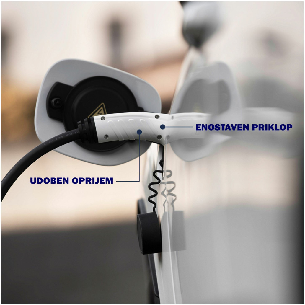 Visokokakovosten kabel za polnjenje električnih vozil, ponuja daljšo dolžino, udobje polnjenja doma (garaža) in tudi na javni polnilni postaji.