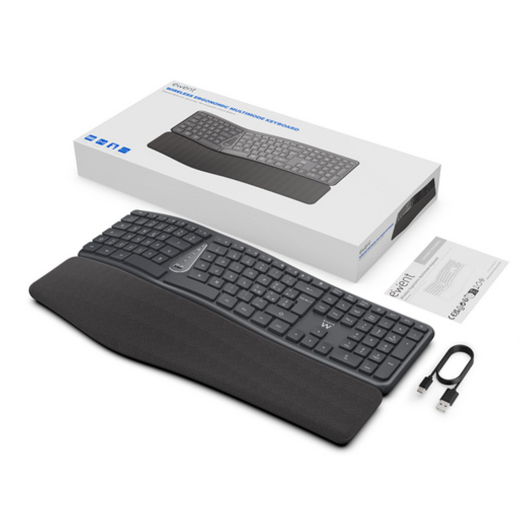 Tipkovnica s svojo ukrivljeno zasnovo omogoča naravno držo med tipkanjem ter zmanjšuje napetost v zapestjih in v podlakti.