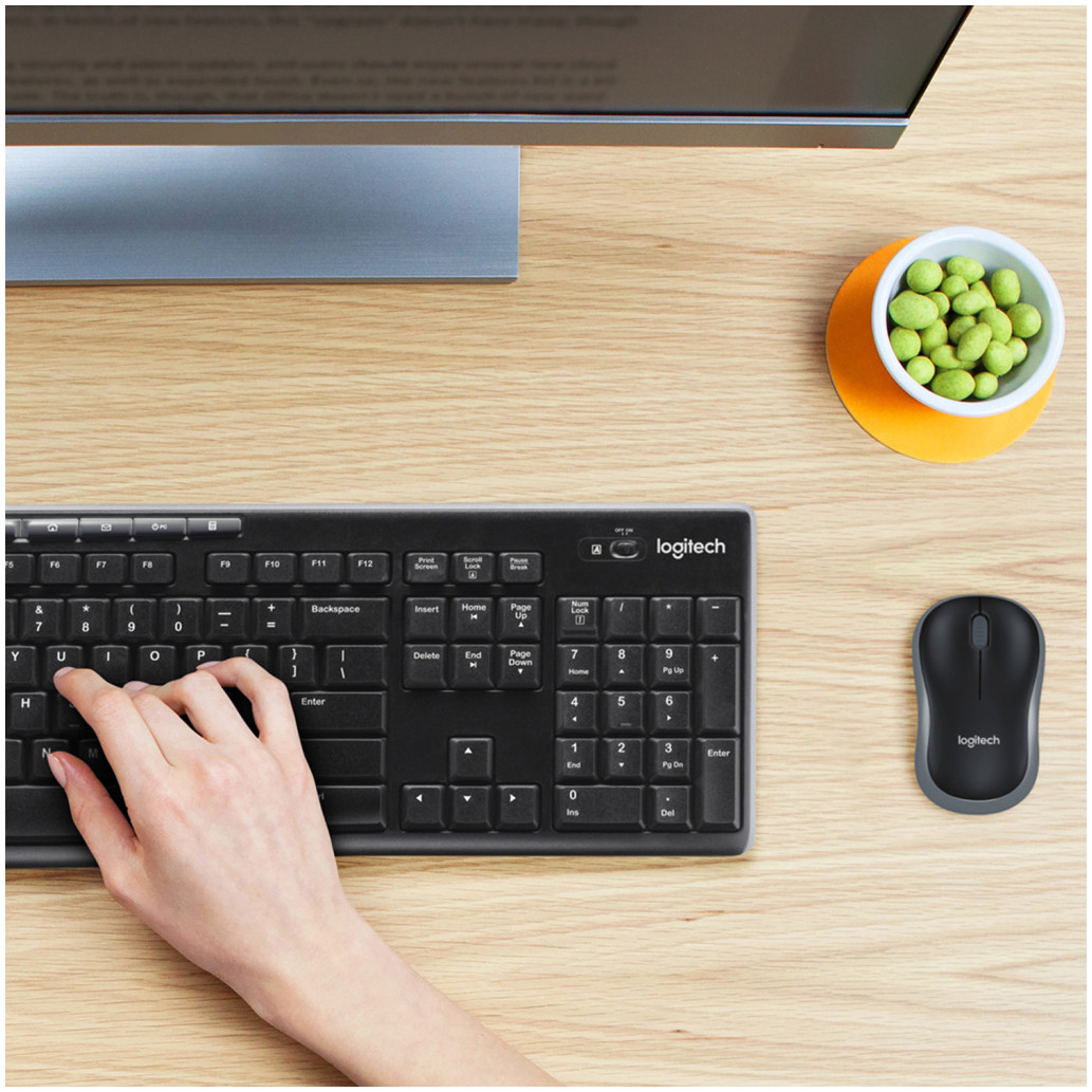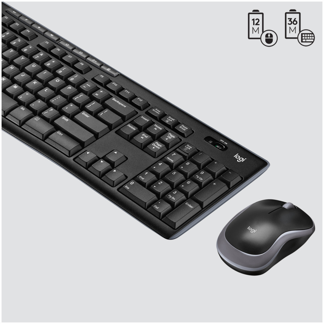 Logitech MK270. Faktor oblike tipkovnice: polna velikost (100 %). Stil tipkovnice: ravna Tehnologija povezovanja: Brezžična, Vmesnik naprave: Brezžična RF, Postavitev tipkovnice: QWERTY, Priporočena uporaba: Dom. Barva izdelka: Črna, Srebrna. priložena miška