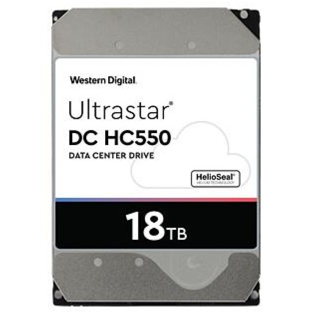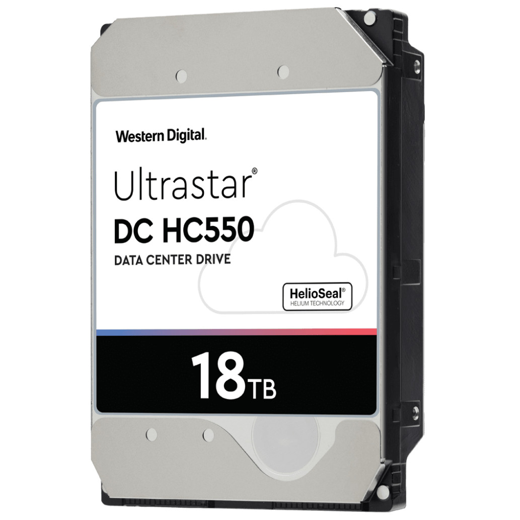 Western Digital Ultrastar DC HC550. Velikost trdega diska: 3,5 palca, zmogljivost trdega diska: 18000 GB, hitrost trdega diska: 7200 RPM