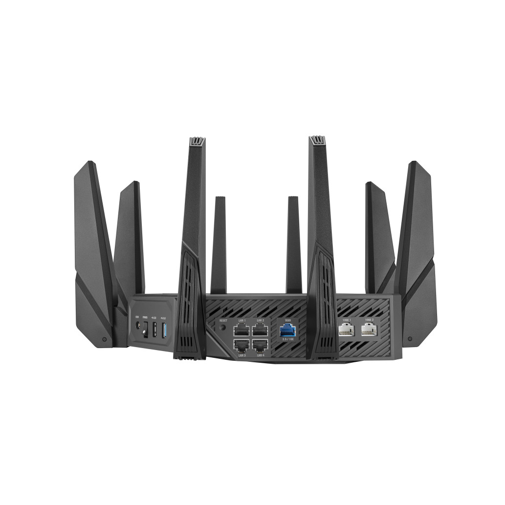 Funkcije: zaščita požarnega zidu, podpora NAT, IGMP vohunjenje, ponavljajoči se način, podpora za Syslog, IPv6 support, roditeljski nadzor, operativni način Access Point, Quality of Service (QoS), dual WAN connection, IPSec passthrough, DHCP server, Samba support, statički IP modem, port forwarding, ASUS AiDisk, reset button, Apple Time Machine kompatibilen, okidanje porta, 3G/4G USB Dongle Support, VPN Server, Active Threat Feed (ATF) servis, ASUS AiCloud, ASUSWRT, PPTP passthrough, L2TP passthrough, MU-MIMO tehnologija, tehnologija bona, adaptivna QoS, Povezovanje povezav, VPN odjemalec, ASUS Router App, LED on/off button, VPN Fusion, Airtime Fairness, DMZ support, Traffic Analyser, traffic monitoring, ASUS AiMesh, Explicit Beamforming, Bandwidth Limiter, bridge mode, Amazon Alexa support, ASUS AiProtection Pro, OpenVPN client, PPTP VPN client, Orthogonal Frequency Division Multiple Access (OFDMA), OpenVPN strežnik, IPTV podpora, WPS gumb, NAT passthrough, RTSP Pass-Through, H.323 Pass-Through, SIP Pass-Through, AiMesh način node, Game Boost, Android tethering, WTFast, ROG First, Bandwidth Monitor