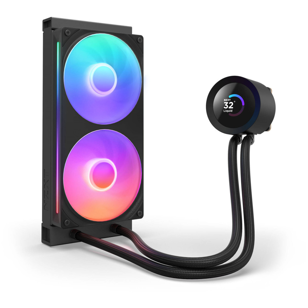 1,54-palčni LCD-zaslon je mogoče prosto konfigurirati s programsko opremo NZXT CAM. Prikazuje temperature, animirane vsebine ali spletne integracije, kot je Spotify. Usmerjenost zaslona je mogoče zasukati s programsko opremo.