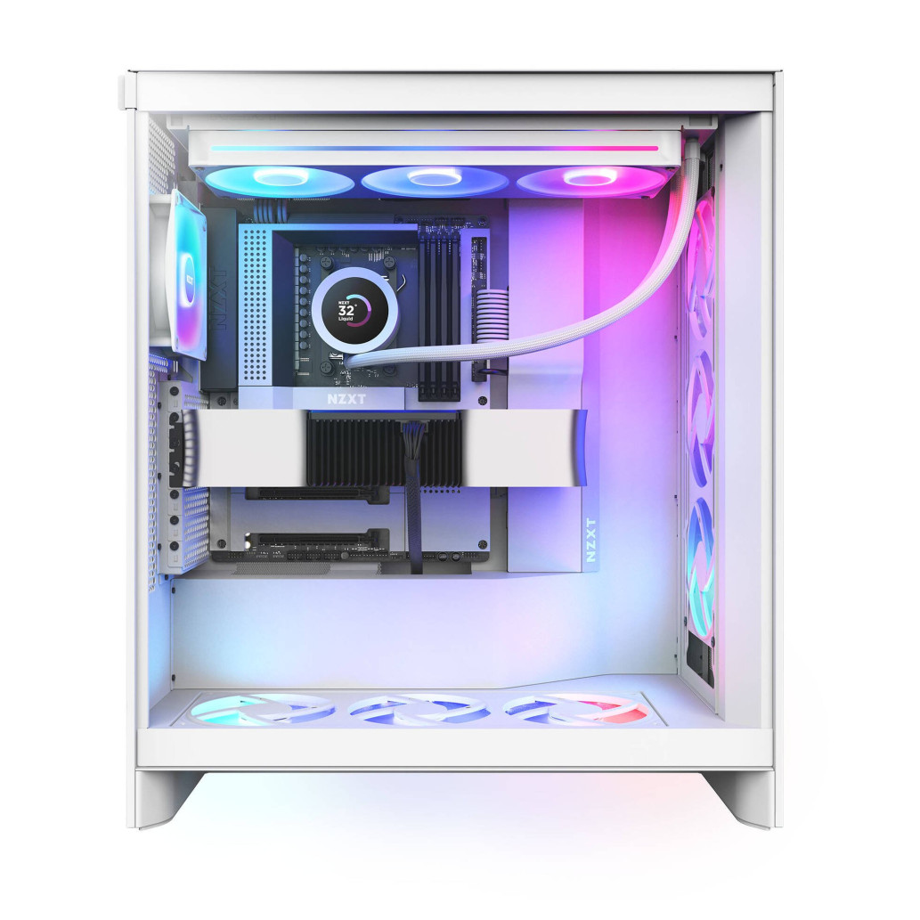 Kvadratni 1,54-palčni zaslon z ločljivostjo 240 × 240 slikovnih pik in svetlostjo 300 cd/m² je v celoti konfiguriran prek NZXT CAM. Prikažete lahko sistemske podatke, grafiko po meri ali animirano vsebino ter zaslon zavrtite glede na orientacijo namestitve.