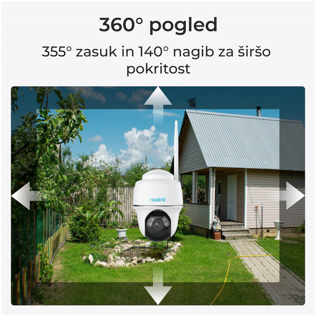 Spoznajte Argus Series B430 – 100 % brezžična samostojna baterijska varnostna kamera. Ne potrebuje bazne postaje, zapletenih nastavitev ali naročnin, tako da lahko lažje zagotovite zaznavanje oseb/vozil, dvosmerni zvok in brezskrbnost. Ker deluje na sončno energijo/baterije, vam ni treba občasno polniti baterije kamere. S pan & tilt lahko pokrije vsak kotiček vašega širokega dvorišča ali vhoda v trgovino. 360° popolna pokritost Izkusite obsežen 360-stopinjski pogled okoli svojega doma in brez truda spremljajte vsak kotiček svojega prostora ter zagotovite, da nič ne uide vašemu budnemu očesu. Osvetlite noč v živih barvah Izkusite izboljšano noč z živahnimi barvami in bogatimi podrobnostmi, tudi pri šibki svetlobi Kompatibilen z Reolink Solarnim panelom