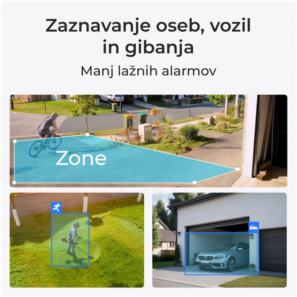 Senzorika: Razdalja zaznavanja PIR 10m, Kot:120° vodoravno, odkrivanje oseb; odkrivanje vozil